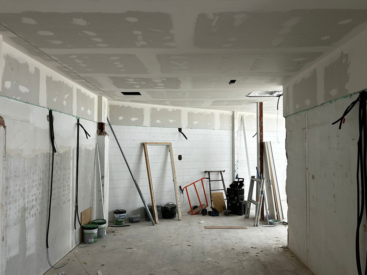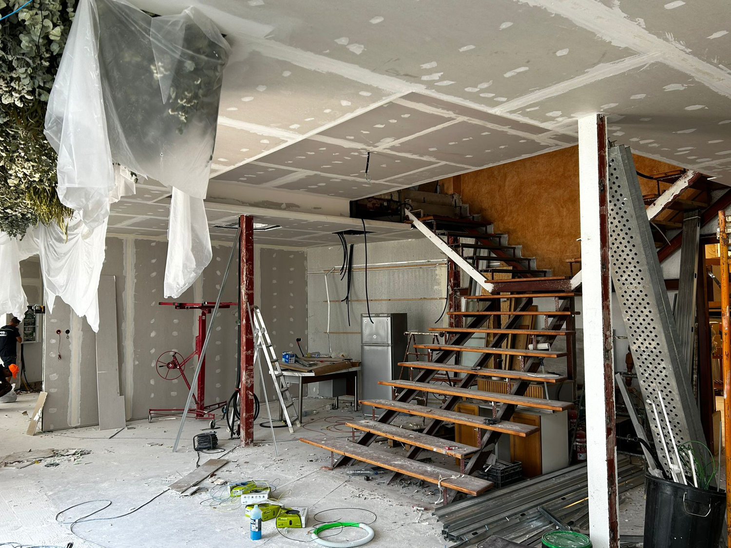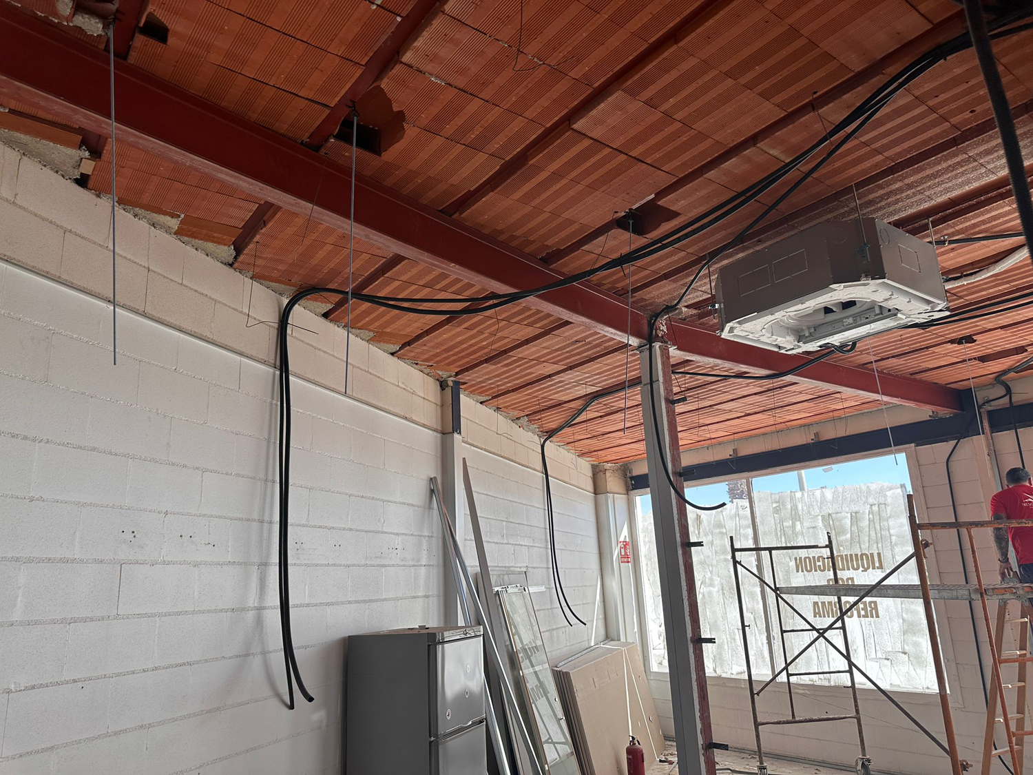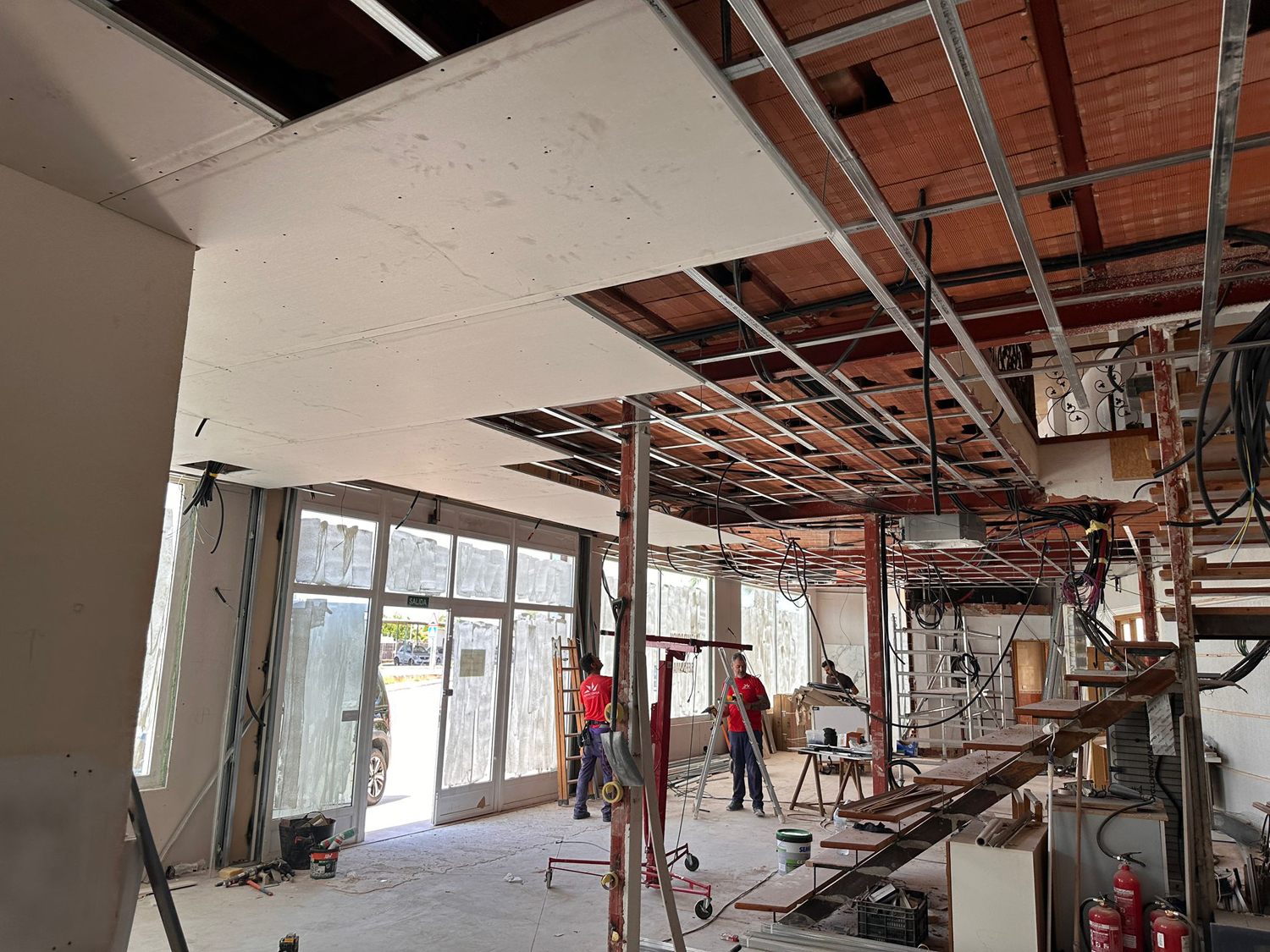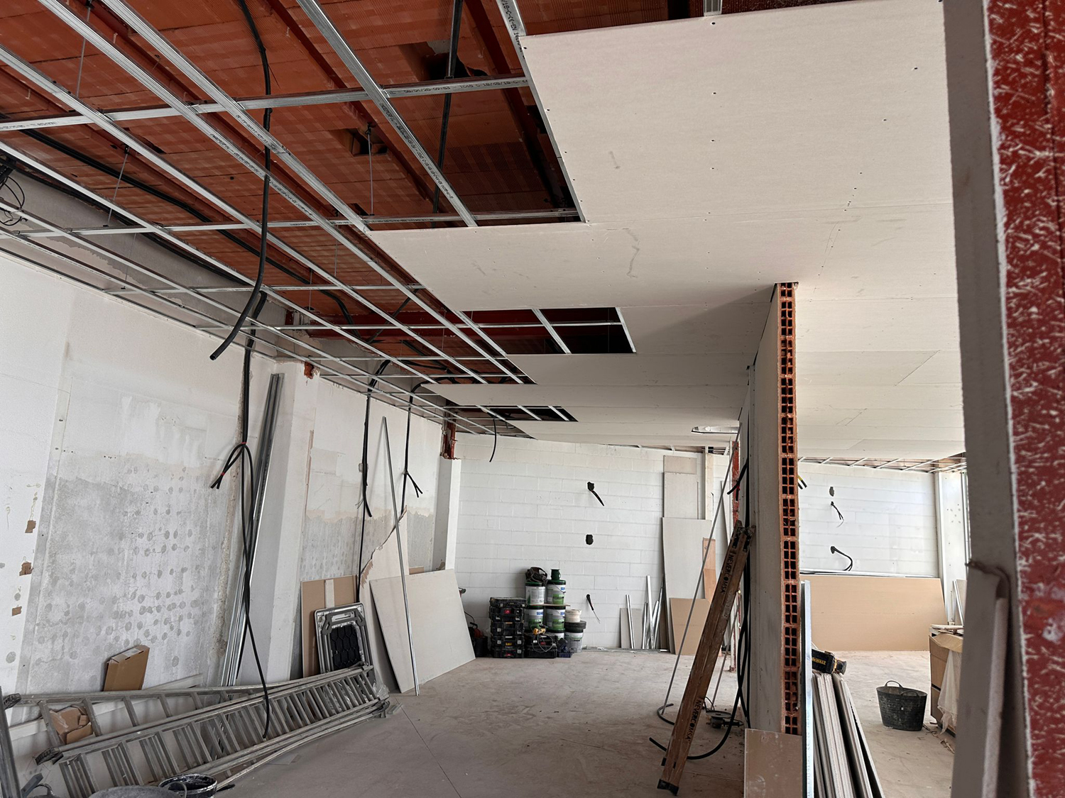 Colocación de falso techo en Carpintería Dathamer de Rojales, mejorando el aislamiento acústico y térmico, además de aportar un acabado moderno y funcional al espacio