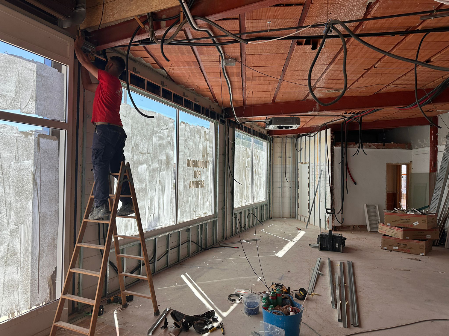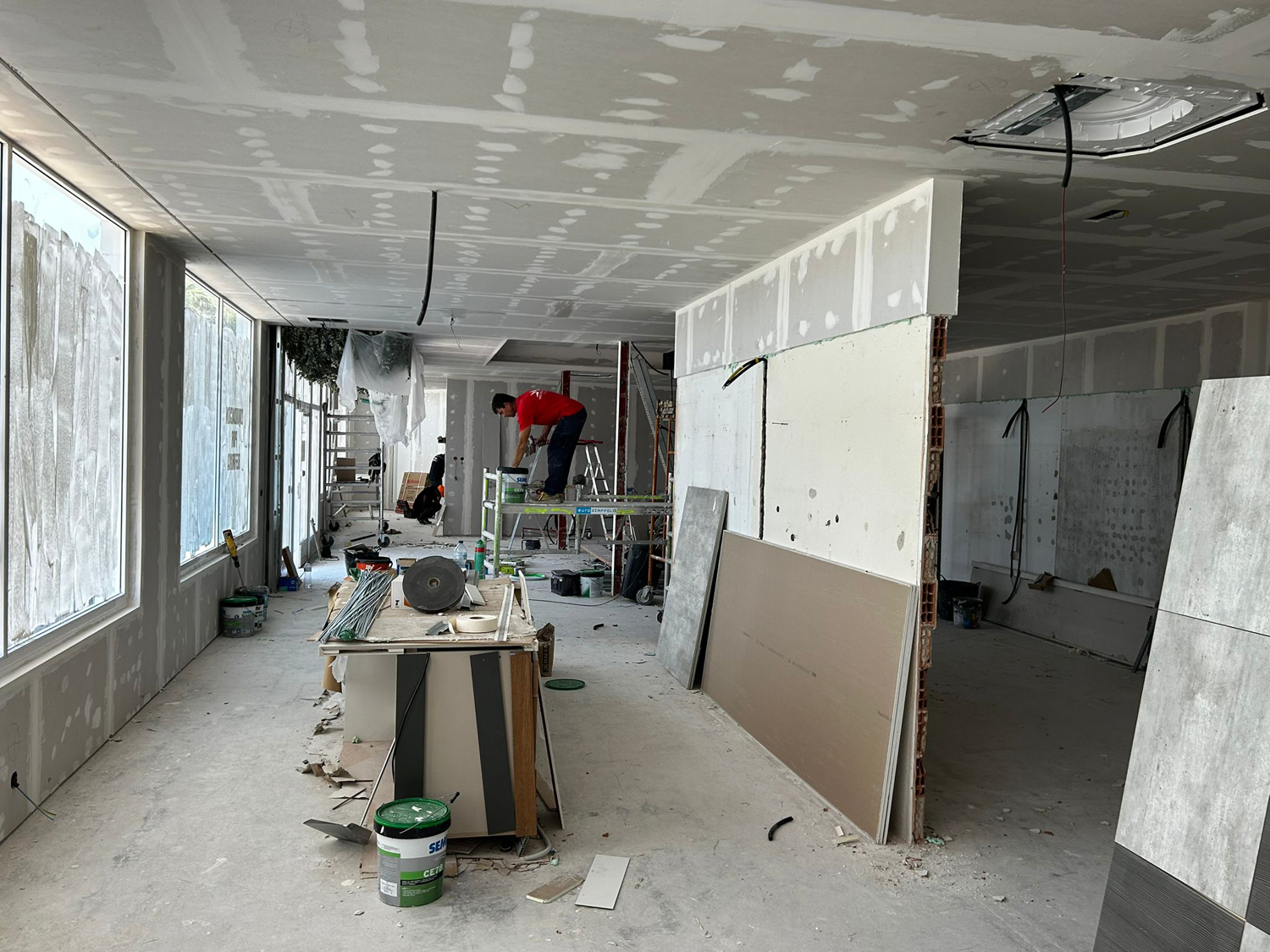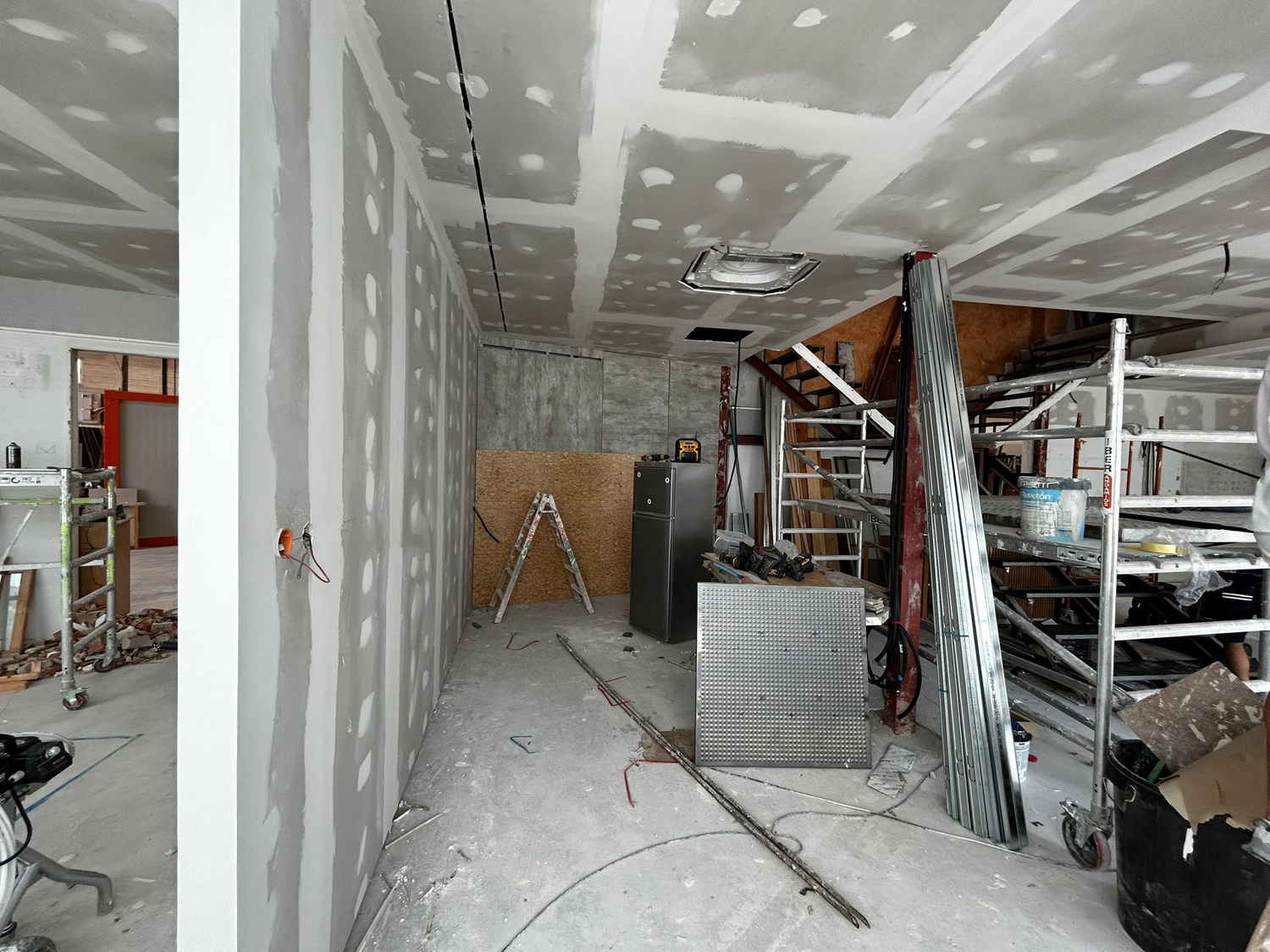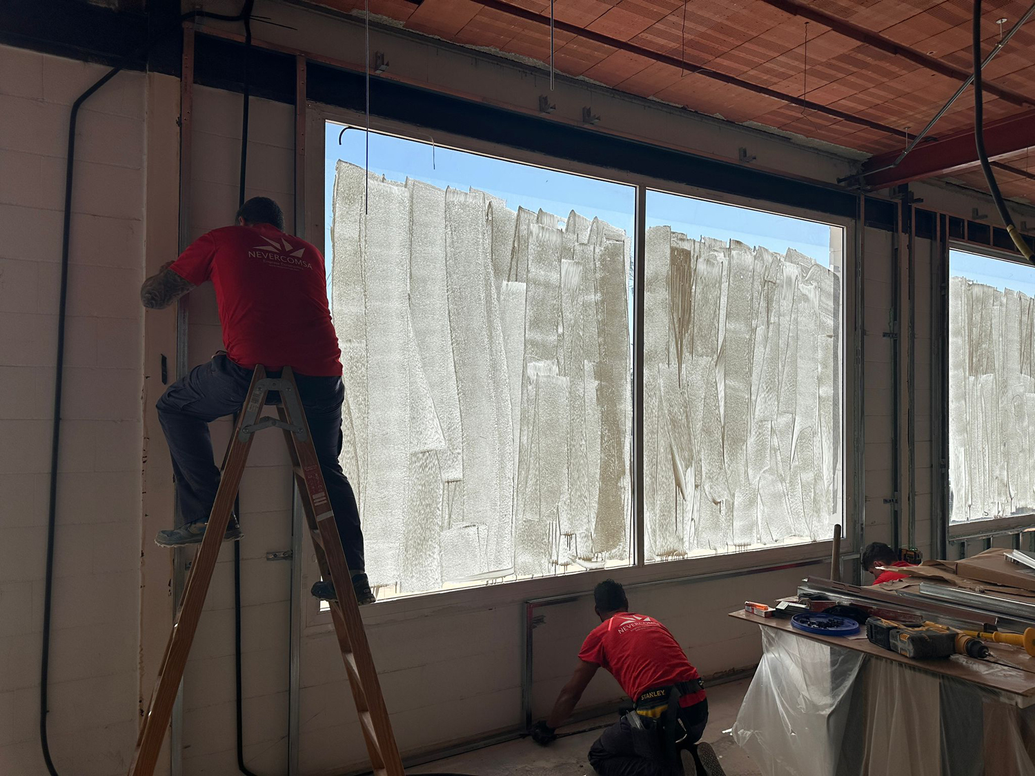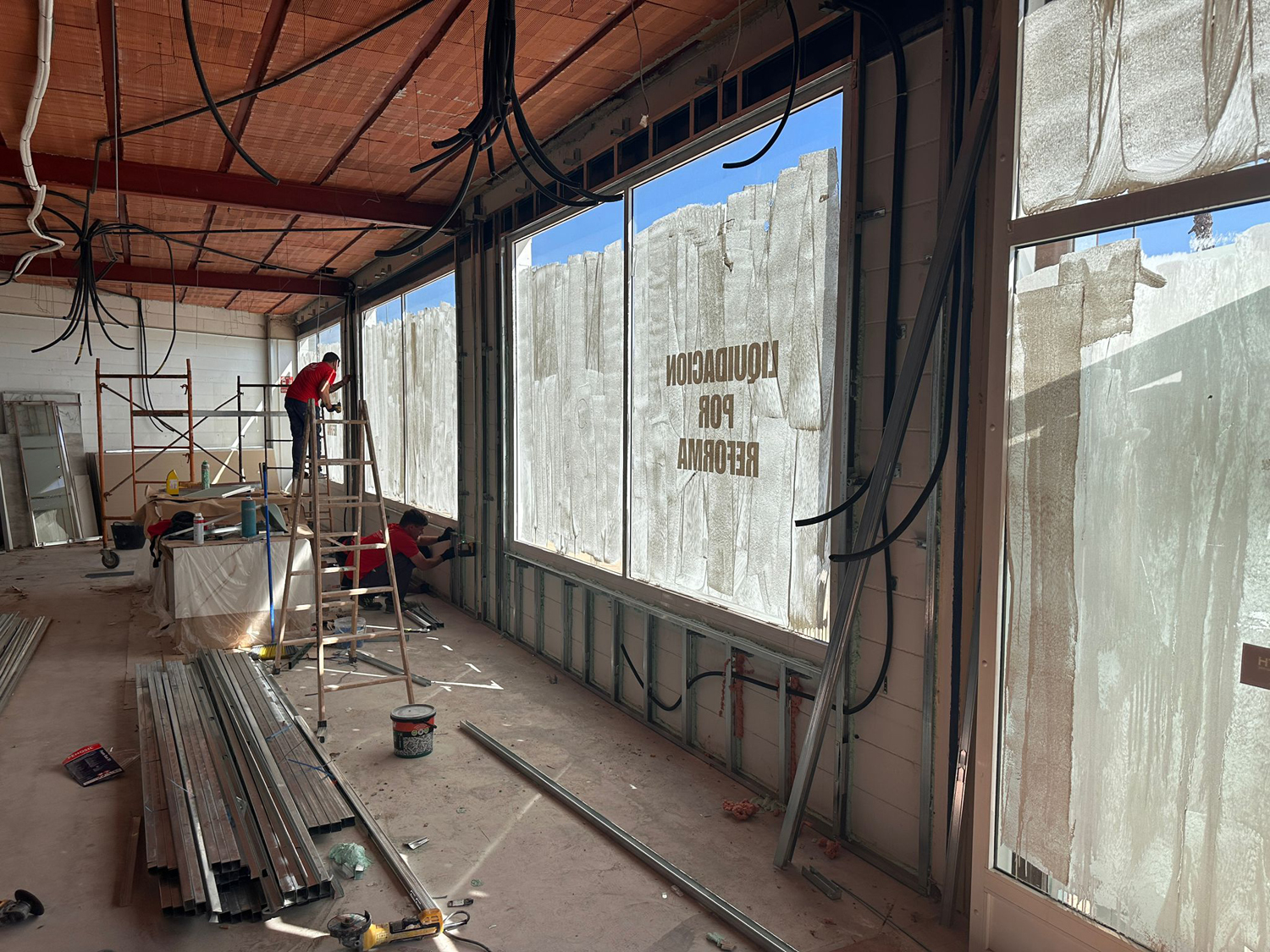 Colocación de falso techo en Carpintería Dathamer de Rojales, mejorando el aislamiento acústico y térmico, además de aportar un acabado moderno y funcional al espacio