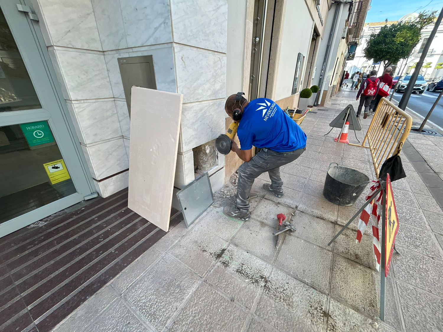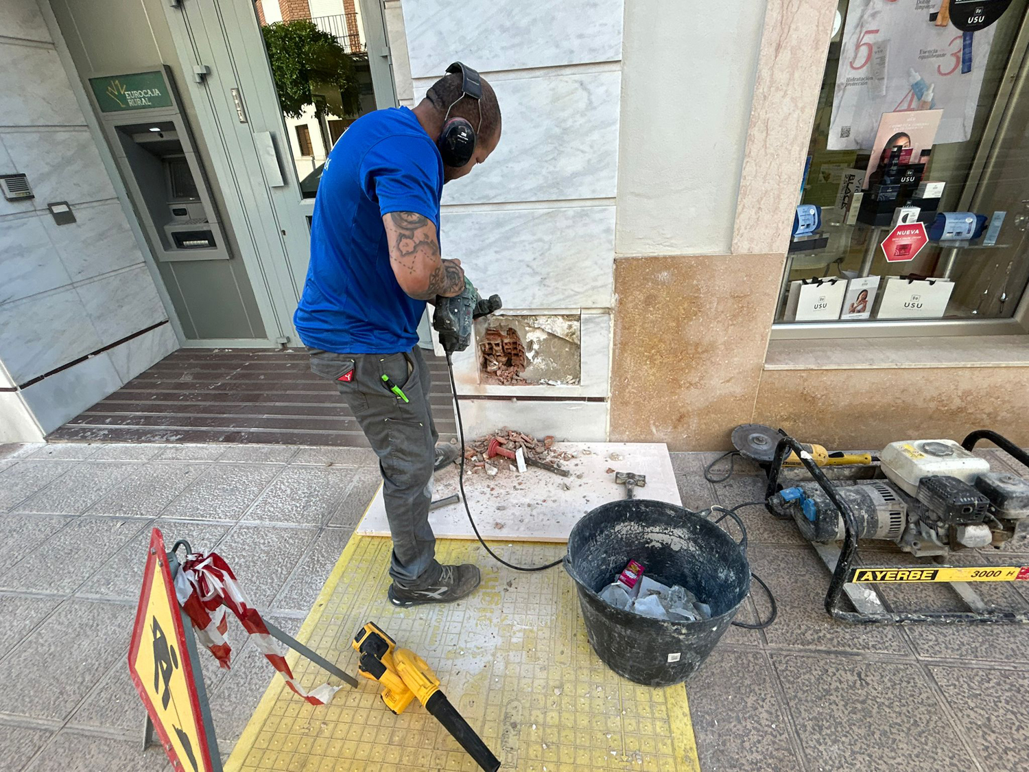 Colocación de puerta para contador en banco Eurocaja Rural de Quart de Poblet, mejorando accesibilidad, seguridad y estética en las instalaciones del edificio
